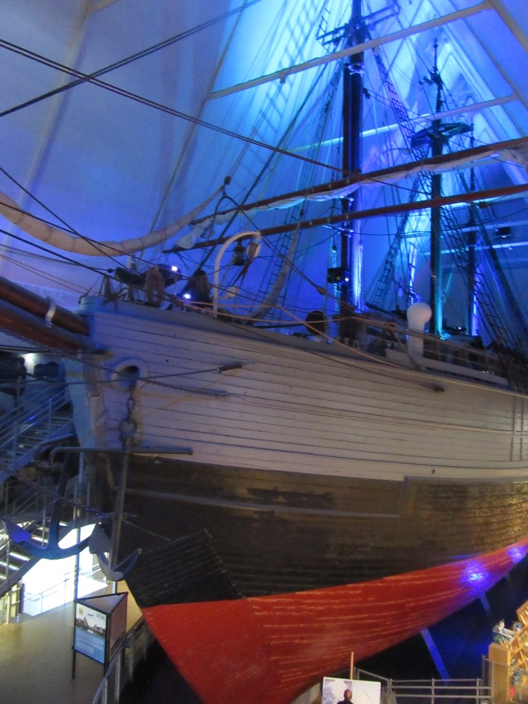 Of course, it wasn’t until I left the ship and explored the incredible exhibition across three floors that I realised the Fram had an even richer past. It had originally been built by Colin Archer for the Norwegian explorer Fridtjof Nansen in 1892, for his daring attempt to reach the North Pole. Nansen’s plan was audacious: the ship was specially designed to withstand the crushing pressure of the Arctic ice, allowing it to be intentionally locked in and drift with the ice pack. The idea was that, over time, the ice would carry the Fram close to the North Pole – a revolutionary approach to polar exploration.